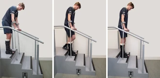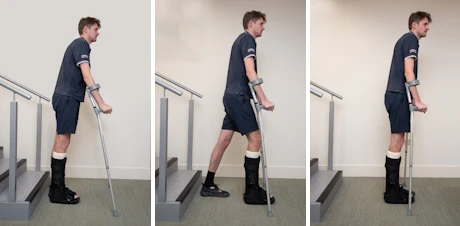 - Bring your crutches up onto the step.